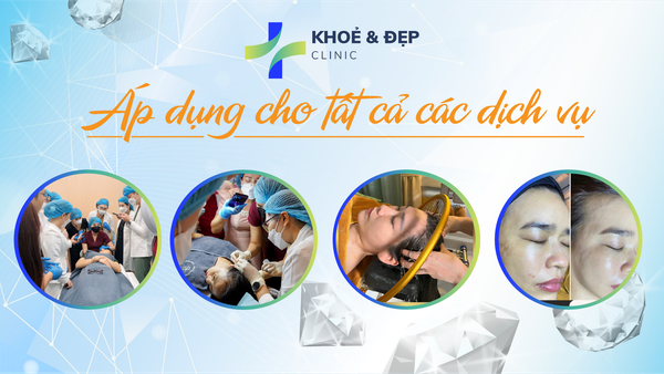 Vì là một chương trình lớn cho dịp lễ hội lớn cuối năm, nên Khỏe & đẹp Clinic không ngần ngại áp dụng cho tất cả dịch vụ làm đẹp hiện đang có tại spa. Đối với các dịch vụ triệt lông và gội đầu dưỡng sinh, chương trình sẽ được áp dụng cho các gói liệu trình. Cụ thể các dịch vụ đang hiện có tại Khỏe & đẹp Clinic bao gồm: